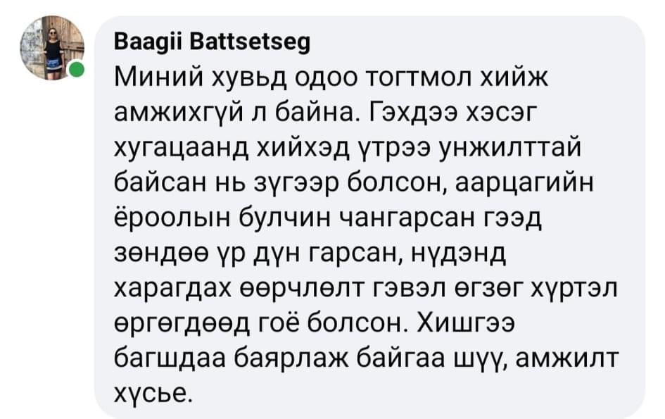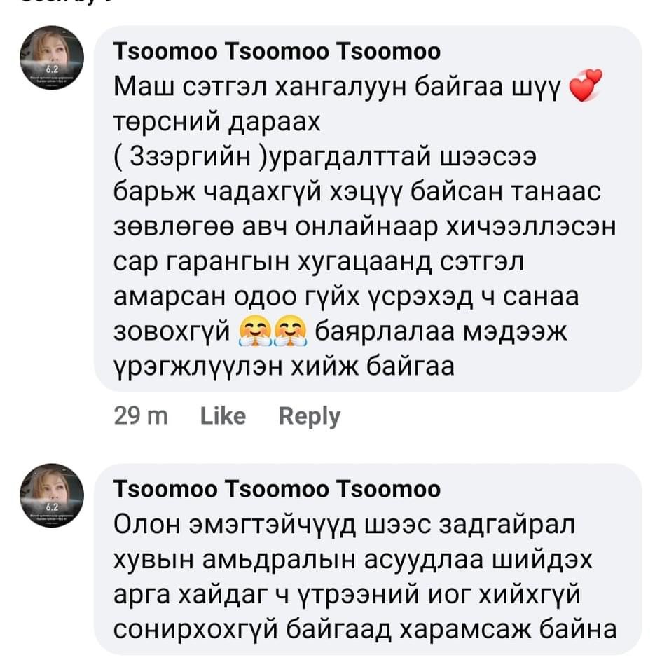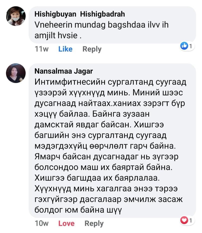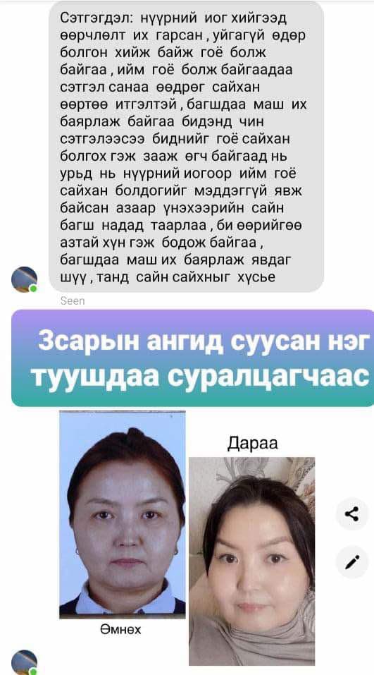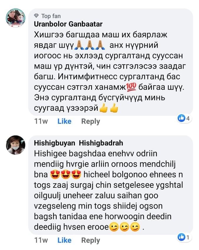 Сайн бн уу багшаа. Ямар азаар таны хичээлд сууваа гэж бодогдож бн. Би нь нүүр гэрэлтээд уруул торсон жижиг үрчлээ арилаад хацари өргөгдсөн, өөртөө хайр хүрээд байдаг болчлоо. Багшдаа чин сэтгэлээсээ талархаж байна